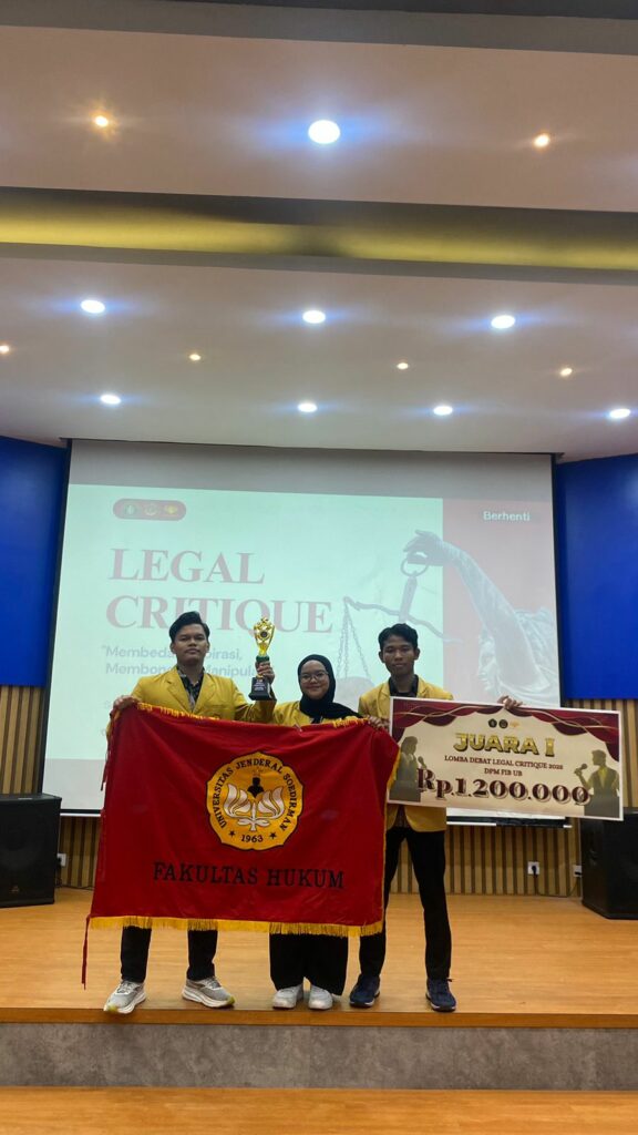 Tim Universitas Jenderal Soedirman terdiri dari 2 mahasiswa  angkatan 2023 yaitu Muhammad Yusuf Habibi dan Putri Saqinah Maharani, serta 1  Mahasiswa Baru Angkatan 2025 yaitu Pahat Wiji Santiko . Tim Fakultas Hukum Universitas Jenderal Soedirman pada babak Semifinal mengalahkan tim Universitas Negeri Surabaya dan pada babak Grand Final berhasil menaklukan tim dari Universitas Airlangga (Surabaya). 4 Tim yang masuk ke Final yaitu Universitas Jenderal Soedirman, Universitas Muhammadiyah Sorong (Papua), Universitas Airlangga dan Universitas Negeri Surabaya.