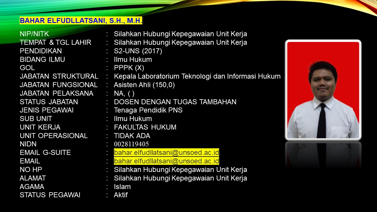 | Kepala Laboratorium Teknologi dan Informasi Hukum | : | Bahar Elfudllatsani, S.H., M.H. |