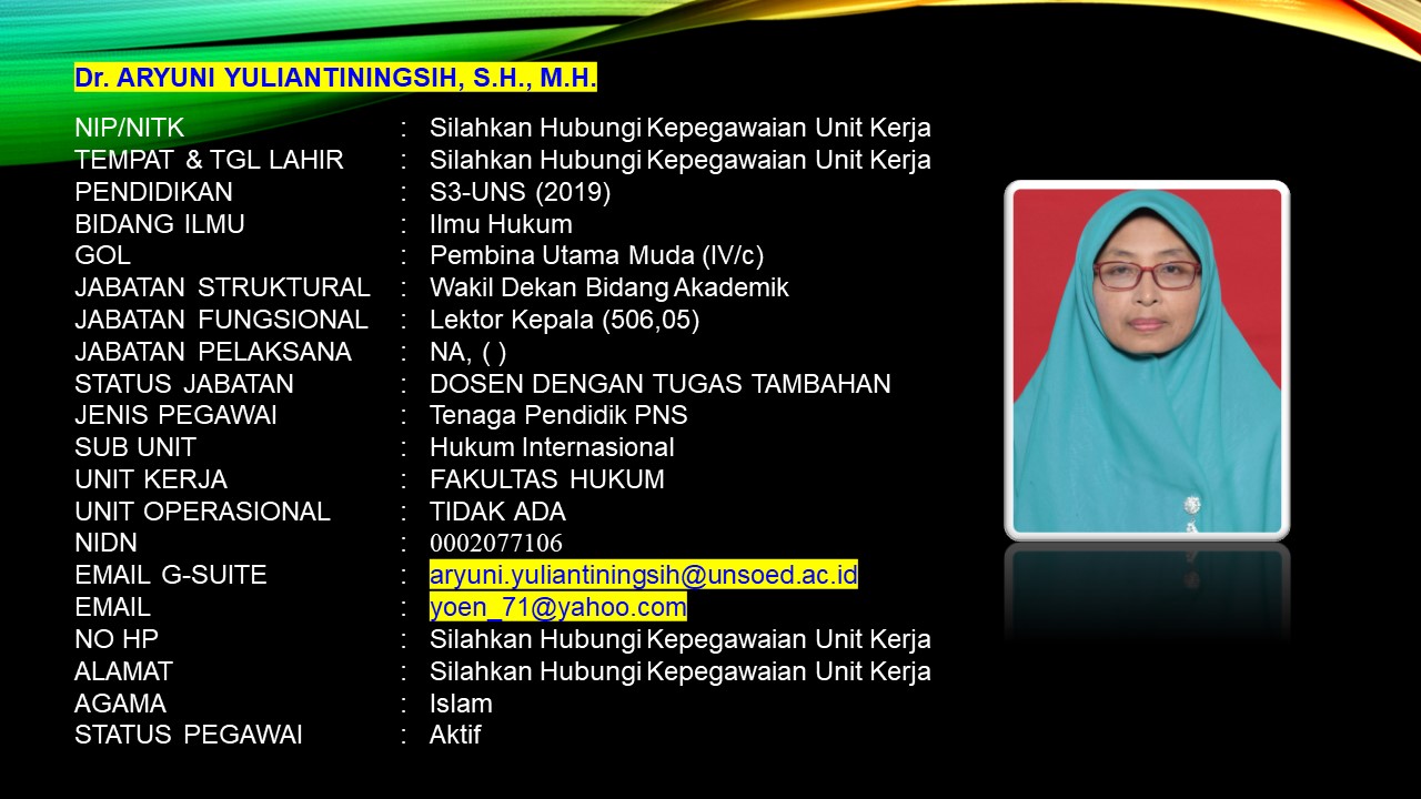 | Wakil Dekan I | : | Dr. Aryuni Yuliantiningsih, S.H., M.H. |