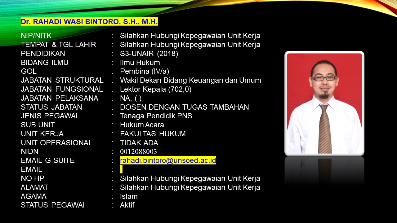 | Wakil Dekan II | : | Dr. Rahadi Wasi Bintoro, S.H., M.H. |