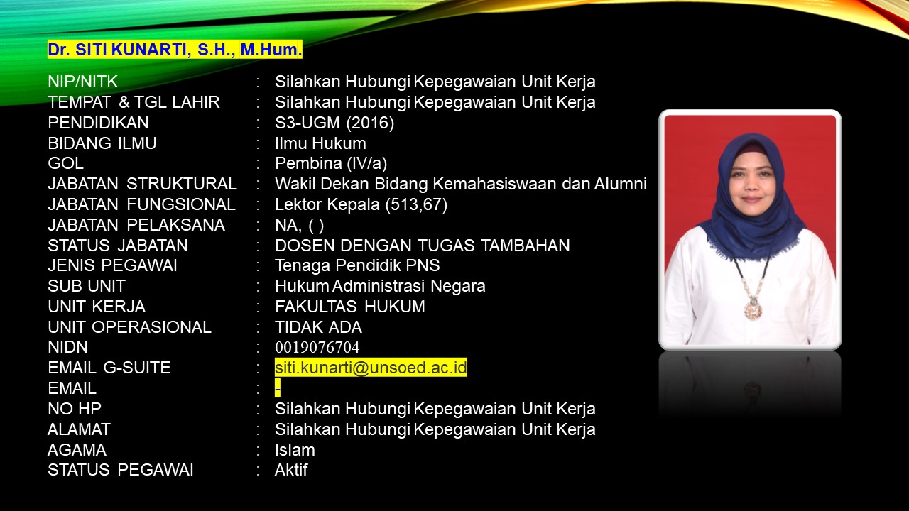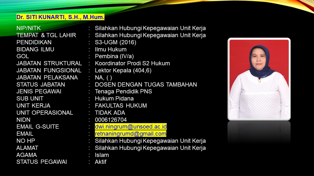 | Wakil Dekan III | : | Dr. Siti Kunarti, S.H., M.Hum. |