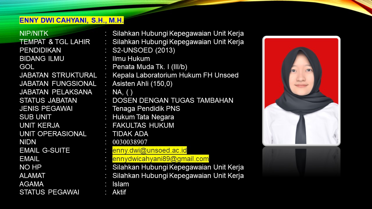 | Kepala Laboratorium Ilmu Hukum | : | Enny Dwi Cahyani, S.H., M. H. |