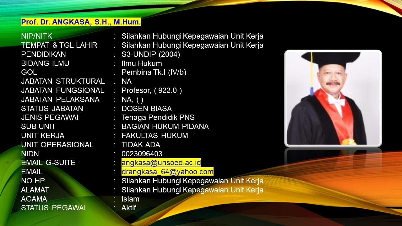 | Kepala Laboratorium Restorative Justice | : | Prof. Dr. Angkasa, S.H., M.Hum. |